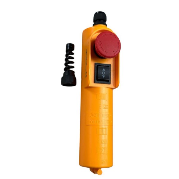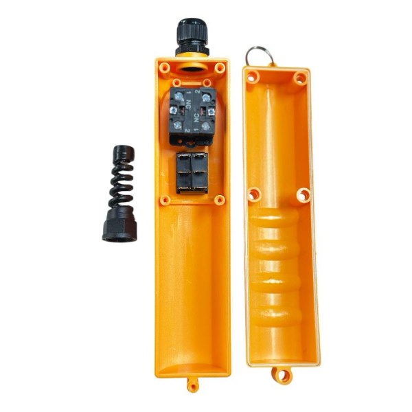 COB 21E Sarı Vinç kumanda kutusu Acil Stop butonlu ve kondansatör yuvalı 220 volt (monofaze)